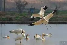 丹顶鹤:是鹤科、鹤属的一种大型涉禽,体长120-160厘米。颈、脚较长,通体大多白色,头顶鲜红色,喉和颈黑色,耳至头枕白色,脚黑色,站立时颈、尾部飞羽和脚黑色,头顶红色,…全部>>