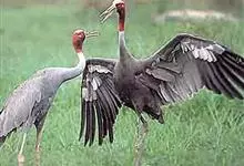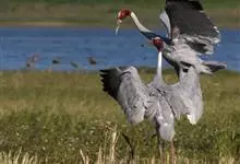赤颈鹤是大型涉禽,共分化为3个亚种。后趾小而高位,不能与前三趾对握,因此不能栖息在树上;全身羽毛大致呈浅灰色,成鸟颈部裸露红色的皮肤。初级飞羽和初级覆羽为黑色,白色而修长的内侧飞羽垂直的覆盖着尾部。…全部>>