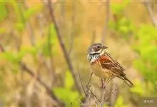 栗耳鹀:是雀形目鹀科的鸟类。体重16-27克,体长130-173毫米。是体型略大的鹀。繁殖期雄鸟的栗色耳羽与灰色的顶冠及颈侧成对比;颈部图纹独特,为黑色下颊纹下延至胸部与黑色纵纹形成的项纹相接,并与…全部>>