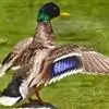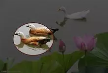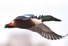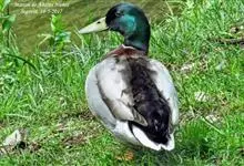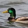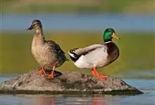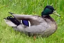 绿头鸭属游禽,大型鸭类。体长47-62厘米,体重大约1千克,外形大小和家鸭相似。雄鸟嘴黄绿色,脚橙黄色,头和颈辉绿色,颈部有一明显的白色领环。上体黑褐色,腰和尾上覆羽黑色,两对中央尾羽亦为黑色,且向…全部>>
