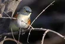 红胁蓝尾鸲俗名:蓝点冈子、蓝尾巴根子、蓝尾杰、蓝尾欧鸲。体型略小而喉白的鸲。特征为橘黄色两胁与白色腹部及臀成对比。雄鸟上体蓝色,眉纹白;亚成鸟及雌鸟褐色,尾蓝。…全部>>