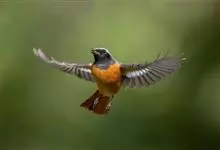北红尾鸲是雀形目鸫亚科红尾鸲属的一种鸟类。北红尾鸲体长13—15厘米。雄鸟头顶至背石板灰色,下背和两翅黑色,具明显的白色翅斑;腰、尾上覆羽和尾橙棕色;前额基部、头侧、颈侧、颏喉和上胸黑色,…全部>>