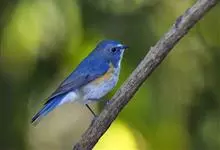 红胁蓝尾鸲俗名:蓝点冈子、蓝尾巴根子、蓝尾杰、蓝尾欧鸲。体型略小而喉白的鸲。特征为橘黄色两胁与白色腹部及臀成对比。雄鸟上体蓝色,眉纹白;亚成鸟及雌鸟褐色,尾蓝。…全部>>