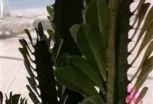 霸王鞭,是大戟科大戟属的多年生肉质灌木,全株含白色乳汁;茎直立,茎基部圆柱形,上部4~5纵棱,边缘波状,外面深绿色;叶互生,上部叶密集,近于簇生,具短柄,其基部有利刺1对;叶片披针形,先端圆,…全部>>