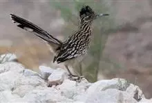 走鹃是杜鹃科、走鹃属动物。中型鸟类,体长50-62厘米,体重220-340克。羽毛为橄榄褐和白色相间,有一条纹;羽冠非常短而且蓬松。眼后的皮肤裸露着,蓝红相间,它的腿非常粗壮,呈浅蓝色;尾巴比较长,…全部>>