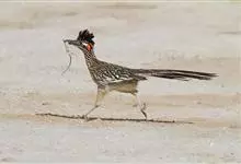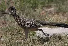 走鹃是杜鹃科、走鹃属动物。中型鸟类,体长50-62厘米,体重220-340克。羽毛为橄榄褐和白色相间,有一条纹;羽冠非常短而且蓬松。眼后的皮肤裸露着,蓝红相间,它的腿非常粗壮,呈浅蓝色;尾巴比较长,…全部>>