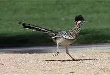 走鹃是杜鹃科、走鹃属动物。中型鸟类,体长50-62厘米,体重220-340克。羽毛为橄榄褐和白色相间,有一条纹;羽冠非常短而且蓬松。眼后的皮肤裸露着,蓝红相间,它的腿非常粗壮,呈浅蓝色;尾巴比较长,…全部>>