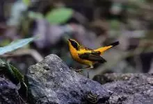 金色林鸲是鹟科、鸲属小型鸟类,体长12-15厘米。头顶至背黄橄榄绿色,眼先和头侧黑褐色,眉纹金橙黄色。肩、翅上小覆羽、腰、尾上覆羽和整个下体概为金橙黄色,两翅黑色。中央尾羽黑色,…全部>>