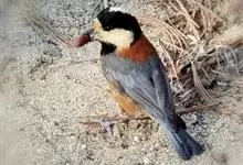 杂色山雀,是山雀科山雀属的一种动物。体重17-18克,体长125-140毫米。雌雄羽色相似。额、眼先、耳羽至颈侧乳黄色,头顶至后颈黑色,后头中央有一白斑。上背栗色,上体余部及翼蓝灰色。颏、喉黑色,…全部>>