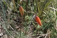 山丹是百合科百合属的多年生草本植物。鳞茎卵形或圆锥形,鳞片长圆形或长卵形,白色;叶散生茎中部,线形,边缘有乳头状突起;花单生或数朵成总状花序,花鲜红色,常无斑点,花被片反卷,…全部>>