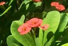 铁海棠为大戟科大戟属蔓生灌木植物;茎多分枝,具纵棱,呈旋转状;叶互生,通常集中于嫩枝上;每个花序基部边缘具微小的红色尖头;苞叶先端圆且具小尖头,无柄,上面鲜红色,下面淡红色;苞片丝状;子房光滑无毛,…全部>>
