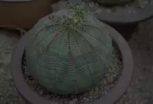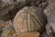布纹球是大戟科、大戟属植物。植株小球形,直径8-12厘米。具棱8,整齐。表皮灰绿色中有红褐色纵横交错的条纹,顶部条纹较密。棱缘上有褐色小钝齿。雌雄异株,雌株球体较扁,雄株茎圆筒形,均为单生,…全部>>