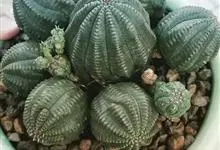 布纹球是大戟科、大戟属植物。植株小球形,直径8-12厘米。具棱8,整齐。表皮灰绿色中有红褐色纵横交错的条纹,顶部条纹较密。棱缘上有褐色小钝齿。雌雄异株,雌株球体较扁,雄株茎圆筒形,均为单生,…全部>>