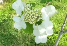 蝴蝶戏珠花 Miq.)是荚蒾科荚蒾属植物。落叶灌木,高达3米;当年小枝浅黄褐色。叶较狭,宽卵形或矩圆状卵形,有时椭圆状倒卵形。花序直径4-10厘米,外围有4-6朵白色、木型的不孕花。果实先红色后变黑色,…全部>>