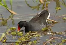 黑水鸡:是鹤形目、秧鸡科的鸟类,共有12个亚种。中型涉禽,体长24-35厘米。嘴长度适中,鼻孔狭长;头具额甲,后缘圆钝;嘴和额甲色彩鲜艳。翅圆形,第2枚初级飞羽最长,或第2枚和第3枚初级飞羽等长,…全部>>