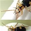 耶气步甲,鞘翅目, 步甲科,屁步甲属,又称屁步甲,头、前胸背板棕黄色;头顶有心形黑斑;小盾片和鞘翅黑色,各鞘翅肩部和中部有1黄色斑;各鞘翅有7条纵隆脊,…全部>>