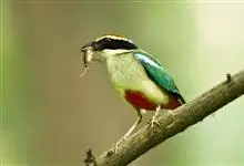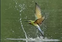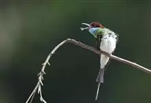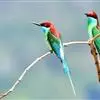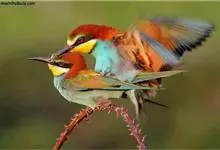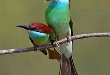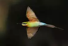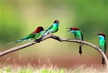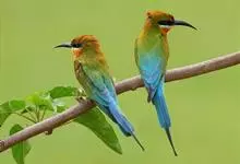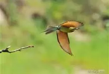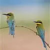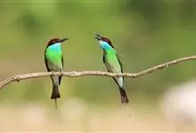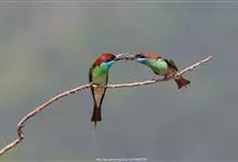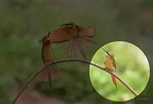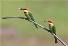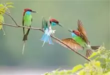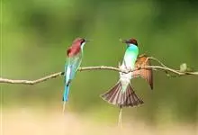蓝颊蜂虎:是蜂虎科、蜂虎属的鸟类,共有2个亚种。体长27-33厘米,翼展46-49厘米,体重38-50克。嘴形细长而下弯,先端尖,…全部>>