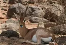 阿拉伯沙瞪羚:是偶蹄目、牛科、瞪羚属的食草动物。头尾长97厘米,身高约55-60厘米。雄性体重约为22千克,雌性性体重为18千克。雌雄都有犄角,雄性长达27厘米,雌性15厘米。体型较小。腿细长,…全部>>