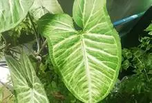 合果芋是天南星科,合果芋属多年生常绿草本植物,合果芋的茎节具气生根,攀附他物生长。叶片呈两型性,箭形或戟形;叶基裂片两侧常着生小型耳状叶片。佛焰苞浅绿或黄色。合果芋一般不易开花。…全部>>