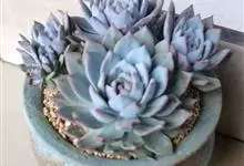 蓝石莲是景天科、拟石莲花属的多肉植物。茎部粗壮,成熟植株茎部木质化。叶片莲座型密集排列,株径不会很大,叶片相对较薄,常年绿色,表面布有白色粉末,中部凹陷,呈倒水滴状。叶尖较尖,叶缘光滑无褶皱,…全部>>