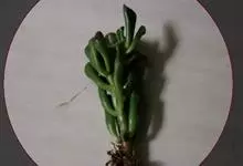 筒叶花月,是景天科青锁龙属的多年生草本植物。植株多分株,灌木状,茎较粗壮,圆柱形,表皮灰褐色;叶片肉质,互生,呈圆筒状,簇生于茎或分枝顶端,叶端呈斜截形,截面为椭圆形;花呈星状,淡白色;花期秋季。…全部>>