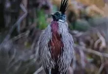 红腹角雉属于鸡形目雉科,雄鸟体羽及两翅主要为深栗红色,满布具黑缘的灰色眼状斑,下体灰斑大而色浅。雌鸟上体灰褐色,下体淡黄色,杂以黑、棕、白斑。全部>>