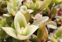 燕子掌 Druce),景天科青锁龙属直立灌木,茎粗壮,多分枝,灰绿色,有老树皮剥落留下的水平棕色条纹;叶具短柄,绿色,无毛,通常具红色边缘,倒卵形;花冠呈星状,…全部>>
