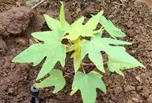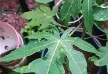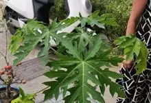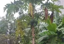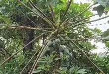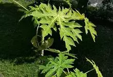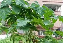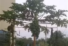 番木瓜,番木瓜科番木瓜属的常绿软木质小乔木,高达10米,具有乳汁;茎不分枝或有时于损伤处分枝;叶大且聚生于茎顶,近似盾形,叶柄中空;花单性或两性,有些品种雄株偶尔生两性花或雌花,…全部>>