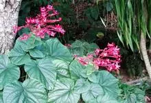 赪桐 Sweet)是唇形科、大青属灌木,高1-4米,叶片圆心形,顶端尖或渐尖,基部心形,边缘有疏短尖齿,表面疏生伏毛,二歧聚伞花序组成顶生,大而开展的圆锥花序,花序的最后侧枝呈总状花序,花萼红色,…全部>>