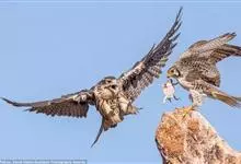 游隼yóu sǔn:是隼科、隼属的中型猛禽,共有18个亚种。体长41-50厘米。翅长而尖,眼周黄色,颊有一粗著的垂直向下的黑色髭纹,头至后颈灰黑色,其余上体蓝灰色,尾具数条黑色横带。…全部>>