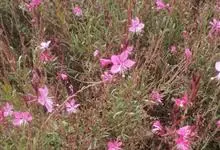 山桃草是柳叶菜科、山桃草属植物。多年生宿根草本。高60-100厘米,叶无柄,椭圆状披针形或倒披针形,花期晚春至初秋;多花型,花蕾白色略带粉红,初花白色,谢花时浅粉红。花紫红色,成密生的穗状花序,…全部>>