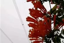 炮仗藤 Miers)紫葳科炮仗藤属藤本植物。小枝顶端有丝状卷须;叶对生,卵形;花萼钟状,橙红色,长椭圆形,花丝丝状,花药叉开;果瓣为革质,舟状。花期1-6月。初夏红橙色的花朵累累成串,状如鞭炮,…全部>>