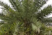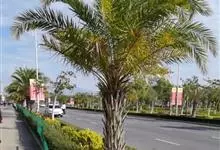 加那利海枣是棕榈科刺葵属植物,单干直立,自然高度可达18米,干径50-90厘米,幼时被以枯叶,老树则叶柄基部残存。具波状叶痕,羽状复叶,顶生丛出。雌雄异株,肉穗花序自叶间抽出,长可达2米。浆果,…全部>>