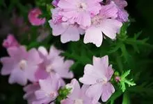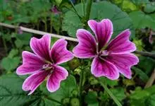 锦葵:二年生或多年生直立草本,高50-90厘米,分枝多,疏被粗毛。叶圆心形或肾形,具5-7圆齿状钝裂片,两面均无毛或仅脉上疏被短糙伏毛。花3-11朵簇生,小苞片3,长圆形疏被柔毛;花紫红色或白色,…全部>>
