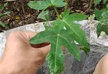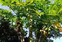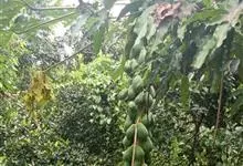 番木瓜,番木瓜科番木瓜属的常绿软木质小乔木,高达10米,具有乳汁;茎不分枝或有时于损伤处分枝;叶大且聚生于茎顶,近似盾形,叶柄中空;花单性或两性,有些品种雄株偶尔生两性花或雌花,…全部>>