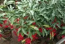 朱砂根是报春花科紫金牛属植物,又名铁凉伞、红铜盘、百两金、大罗伞、开喉箭等,为常绿小灌木,高1~2米,茎粗壮,无毛,除侧生特殊花枝外,无分枝,叶片革质或坚纸质,椭圆形、椭圆状披针形至倒披针形,…全部>>