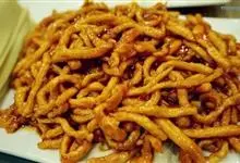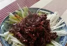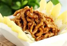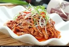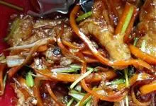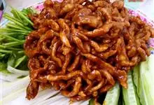 京酱肉丝,是一道知名度很高的菜肴,它是北京菜中的经典代表菜之一。制作时选用猪瘦肉为主料,辅以甜面酱、葱、姜及其它调料,用北方特有烹调技法“六爆”之一的“酱爆”烹制而成。 成菜后,咸甜适中,酱香浓郁…全部>>