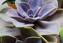 紫珍珠是景天科石莲花属的多年生肉质草本植物。植株中小型;叶片肉质,匙形,呈莲座状紧密排列;叶片粉紫色,叶缘呈粉白色,光照充足时颜色亮丽,不足时叶色会呈现深绿色或灰绿色,叶面光滑,被轻微白粉,…全部>>