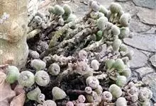 大果榕是桑科榕属的小乔木,株高可达10米;幼枝被柔毛;叶互生,宽卵状心形或近圆形;雄花无梗、匙形、花丝长,雌花生于雌株榕果内,子房白色;榕果簇生于树干基部或老茎短枝上、扁球形或陀螺形,…全部>>
