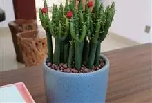 金刚纂,是大戟科大戟属的肉质灌木状小乔木。茎圆柱状,上部多分枝,叶片互生,少而稀疏,顶端钝圆,基部渐狭;花序二歧状腋生,苞叶膜质,总苞阔钟状,裂片半圆形,边缘具缘毛,雄花多枚;花期6-9月。…全部>>