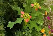 猩猩草:常绿或半常绿灌木,盆栽时株高0.5米-2米,在亚热带地区可长到6米以上。茎直立而光滑,单叶互生,卵状椭圆形至阔披针形,具不规则的深缺刻。长10-15厘米。花小,有蜜腺,排列成密集的伞房花序。…全部>>