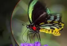金裳凤蝶是凤蝶科、裳凤蝶属的动物。金裳凤蝶身体呈黑色,头、颈和胸侧有红毛,腹部有黑黄两色相间条纹,雄蝶前翅黑色,具黑天鹅绒光泽,各脉两侧灰白色,后翅金黄色,各室外缘有等腰三角形黑斑1枚,斑内侧有晕,…全部>>