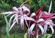 红花文殊兰又名西南文殊兰,拉丁文名Crinum latifolium L.多年生粗壮草本。分布于广西、贵州、云南。常生于河床、沙地。越南至印度及马来西亚也有分布。全部>>