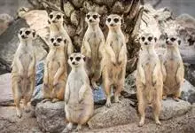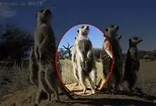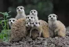 狐獴,是食肉目獴科狐獴属小型哺乳动物。狐獴的眼睛周围有黑色块,新月型的耳朵,修长的躯干和四肢,有着有力、弯曲的爪子,尾巴长细并尖尖延伸到端点,在末端的端点都为黑色。直立时狐獴会用尾巴支撑来保持平衡。…全部>>