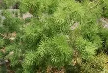 蓬莱松是天门冬科、天门冬属多年生丛生草本植物。宿存,圆柱形肉质根,纵截面为绿色和表面灰色。植株高可达3米。茎呈圆柱形或近四边形,底部木质化,具有灰色或灰褐色。幼嫩的茎在每个节上都被紫绿色鳞片包,…全部>>