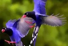 台湾蓝鹊:体长64至65厘米,翼展18至21厘米,尾长约40厘米,尾羽长占了总体长的三分之二。头、脸、颈、喉、胸都是黑色,黄色的眼珠包围黑色的瞳孔,鲜红色的鸟喙、双脚,…全部>>