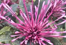 烟火树 Merr.)是唇形科、大青属常绿灌木或小乔木,株高可达4米。幼枝方形,墨绿色。叶对生,长椭圆形或披针形,先端尖,全缘或波状缘。纸质,叶背暗紫红色。聚伞状圆锥花序,顶生,小花多数,聚生成团,…全部>>