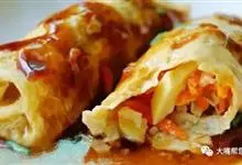 腐皮卷素菜是一道广东省的传统名菜,属于粤菜系。把香菇用清水浸软,去蒂,切细丝,胡萝卜,榨菜分别洗净,切细丝,豆芽,韭黄分别洗净,韭黄切段。用2汤匙油爆香姜丝,胡萝卜,榨菜,放入香菇同炒透,将豆芽放入…全部>>