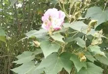 木芙蓉,锦葵科木槿属落叶灌木或小乔木。小枝上有细绒毛;叶片为卵状心形,托叶为披针形,常早落;花单生,花萼为钟形,花冠初为白色或淡红色,后逐渐变为深红色;果实为扁球形,有淡黄色的毛附着。花期8到10月。…全部>>