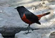 红头咬鹃: 体大,体长约33厘米,体重75-110克。头、颈暗绯红色;背、肩锈褐色。两翅黑色,翅上覆羽和内侧飞羽密被白色细虫蠹斑纹,初级飞羽黑色,外侧具白色羽缘;腰和尾上覆羽较多锈色。中央尾羽深栗色,…全部>>